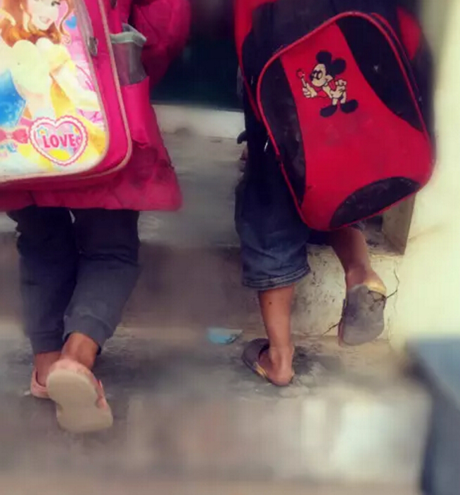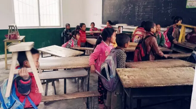 同行的“斑布人”們,剛進入學校就被親眼所見的教學環(huán)境和孩子們的現(xiàn)狀震驚:那破爛不堪的課桌、深秋了仍穿在小腳上的破了洞的涼鞋、拉鏈全壞了的書包,還有一束束懼生且好奇的目光。。。。看著孩子們因為我們的到來歡喜開心的樣子,大家臉上帶著笑,可心里卻是酸楚的淚。我們來了, “斑布公益行”來到了這里。七個多小時的路程是值得的,因為一群天真善良的孩子們在等著我們。一車嶄新的課桌和衣物,對孩子們來說,是比過年還豐富的禮物。/06.jpg)