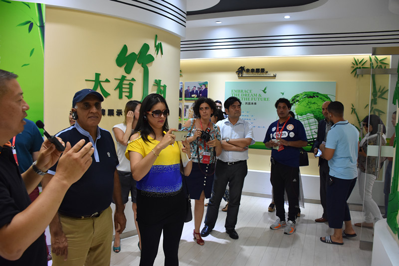 在斑布展廳,外賓及陪同領(lǐng)導(dǎo)在斑布負(fù)責(zé)人的帶領(lǐng)和講解下,從竹產(chǎn)業(yè)的發(fā)展到斑布對竹產(chǎn)業(yè)的開發(fā)利用以及斑布對產(chǎn)品的創(chuàng)新都有了一個全新的了解和認(rèn)識。